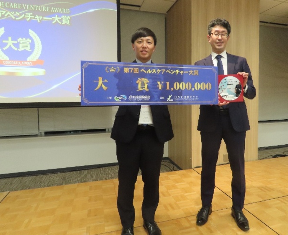 このたびは「第7回ヘルスケアベンチャー大賞」におきまして、大賞という栄えある賞を賜り誠にありがとうございました。運営に尽力された実行委員会・審査員の先生方をはじめ、関係者の皆さまに心より御礼申し上げます。